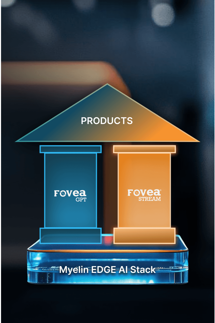 At the heart of Myelin Foundry’s products is our proprietary Edge AI Stack—a modular, scalable foundation built to run real-time intelligence directly on devices.